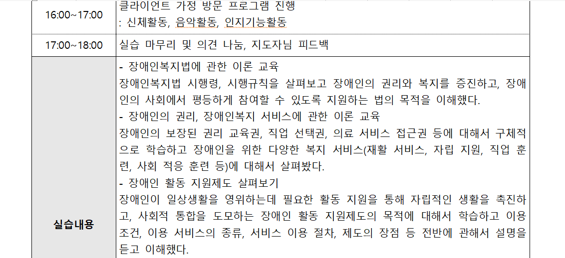 사회복지 현장실습 20일중 16일차로 대한민국 장애인복지법의 기본이념부터 장애인의 권리와 실제 복지서비스까지 정리하며 현장감 있는 통찰을 제공합니다.